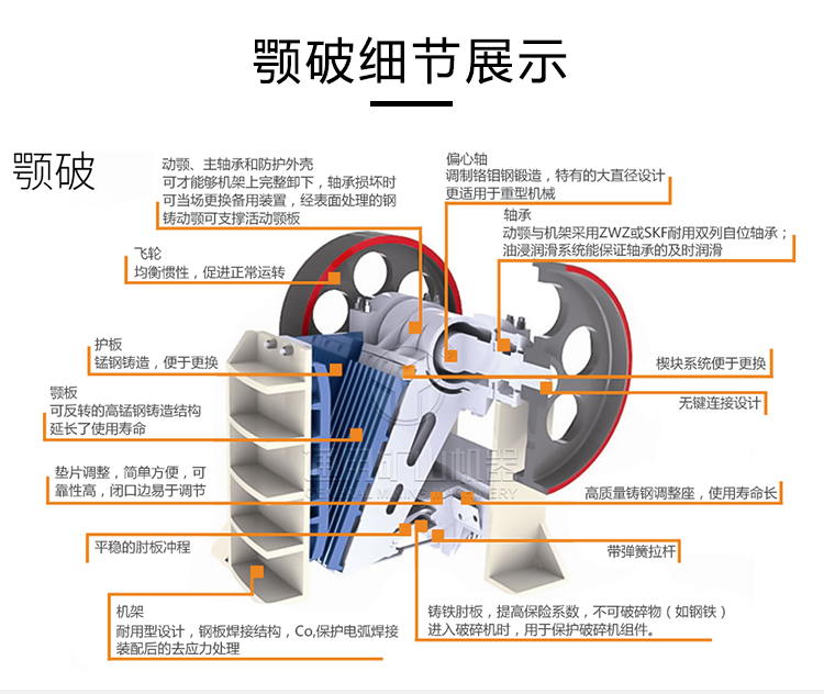可用于各种矿石与大块物料破碎,因其构造简单、智能化程度高、工作可靠、维护和检修容易以及生产和建设费用比较少,现在仍然广泛地应用在冶金、化工、建材、电力、交通等工业部门。