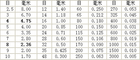 在磨粉机行业内,目是常用的单位名词,不过不少刚进入该行业的人不知道这个单位究竟代表的有多大。下面就给大家看一个目与毫米之间的换算表,相信看过后会有更加清晰的认识。
