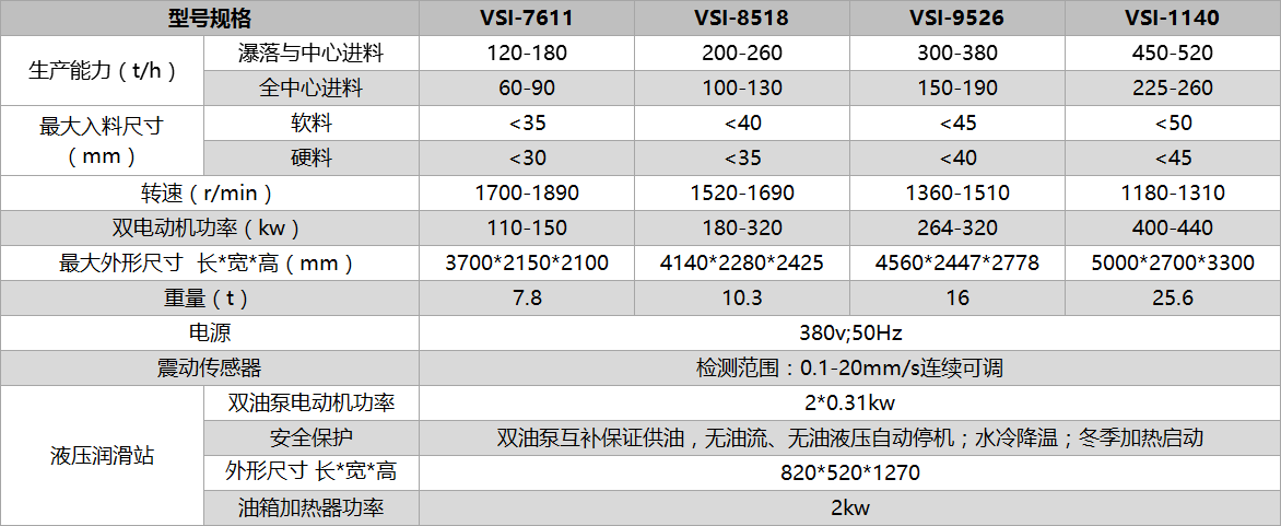 通矿冲击式制砂机采用液压开盖装置,使破碎腔内部件检修拆换方便快捷,缩短了停机时间,省时省力。含振动显示与报警装置,如果设备发生不良运转,可发出警告,使设备停止工作,达到保护机器的目的。采用稀油润滑站,双油泵互补保证供油,无油流、无油压时自动停机;油液冷却及加热装置确保轴承润滑始终处于良好状态,使主轴轴承保持恒温。