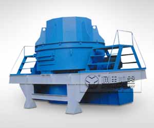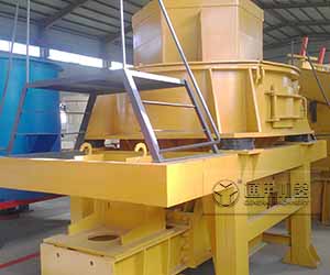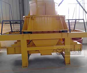 物料由进料斗进入PCL型制砂机,经分离器将物料分成两部分,一部分由分料器中间进入高速旋转的叶轮中,在叶轮内被迅速加速,其加速可达数百倍中立加速度,然后以60-70米每秒的速度从叶轮三个均匀分布的流道内抛射出去,首先同由分离器四周自收落下的部分物料被冲击破碎,然后一起冲击到窝支腔内物料沉层上,被物料衬层反弹,斜向上冲击到涡动腔内受到两次以致多次机率撞击、摩擦和研磨破碎作用。