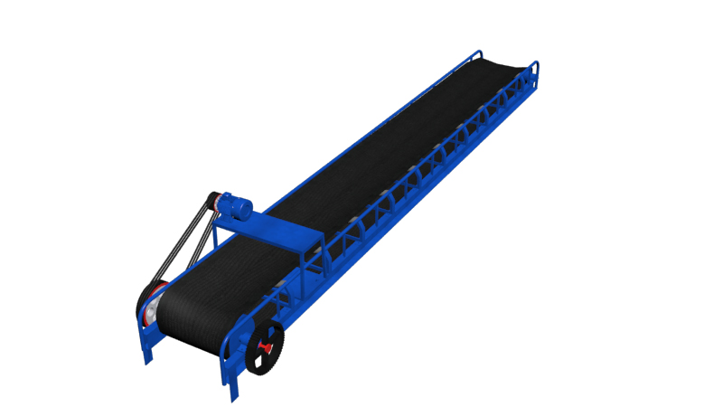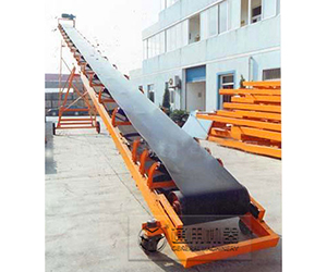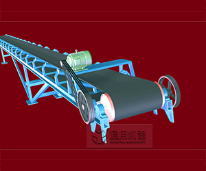胶带传送机主要由机架、输送皮带、皮带辊筒、张紧装置、传动装置等组成?;聿捎糜胖矢职辶佣?,由前后支腿的高低差形成机架,平面呈一定角度倾斜?;苌献坝衅ご跬?、托辊等,用于带动和支承输送皮带。有减速电机驱动和电动滚筒驱动两种方式。