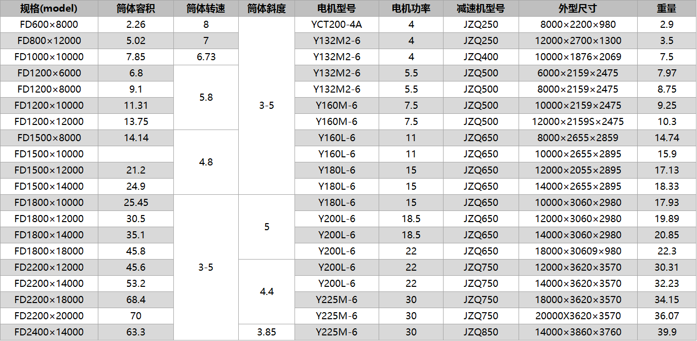 转筒烘干机主要由回转体、扬料板、传动装置、支撑装置及密封圈等部件组成。工作时物料由皮带输送机或斗式提升机送到料斗,经加料机通过加料管道(斜度大于物料的自然倾角)进入加料端。物料从较高一端加入,载热体由低端进入,与物料成逆流接触。随着圆筒的转动,物料受重力作用运行到较底的一端,在筒体内向前移动,直接或间接得到了载热体的给热,得以干燥,然后在出料端经输送机送出。
