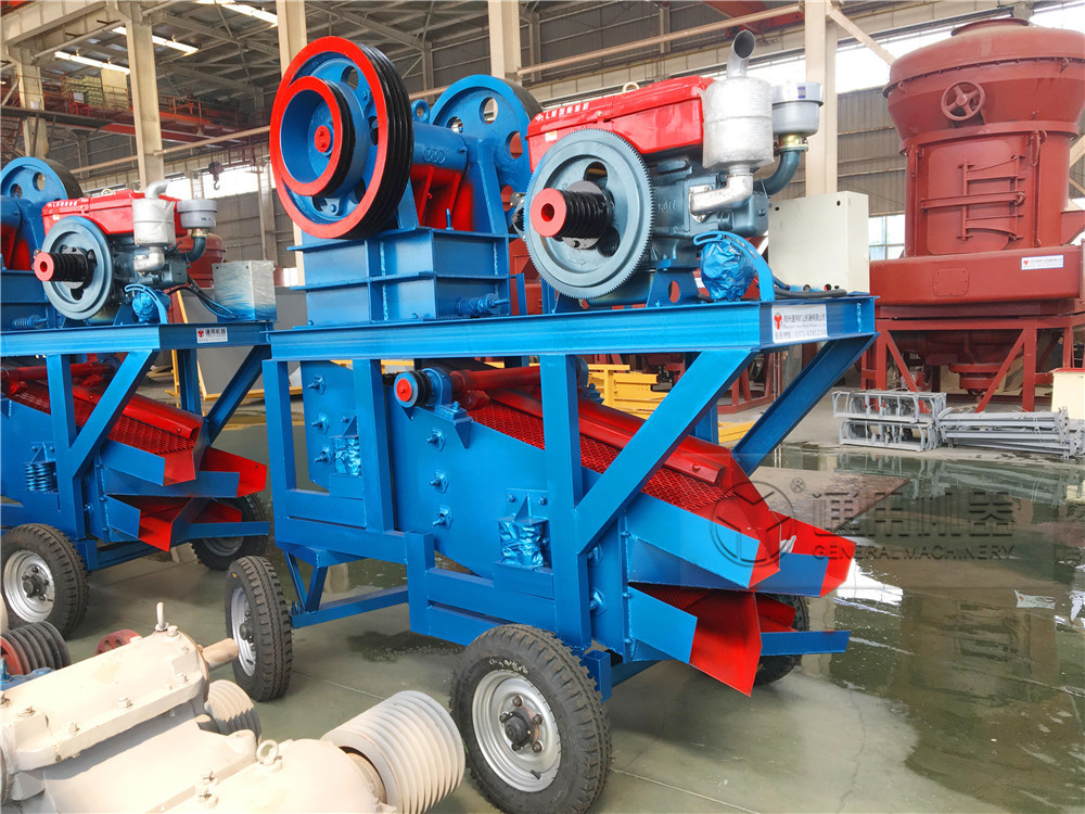 整个破碎筛分系统采用整机一体式,上方是颚式破碎机,下方是振动筛, 最下面是地盘以及轮胎。整机由一体柴油机带动,设计紧凑立体,而且可以移动。首先,100-200mm 的物料经过颚式破碎机破碎,然后物料落到下方的振动筛里面,筛分出客户需要的出料。